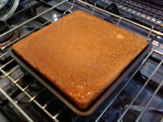 これまでは18cm直径の丸型で焼いていたのだけど、今回は四角に。