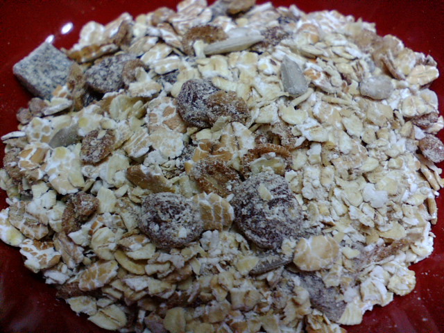 雑穀、麦類、ドライフルーツ類、ナッツ類などが混ぜ合わされた食べ物。