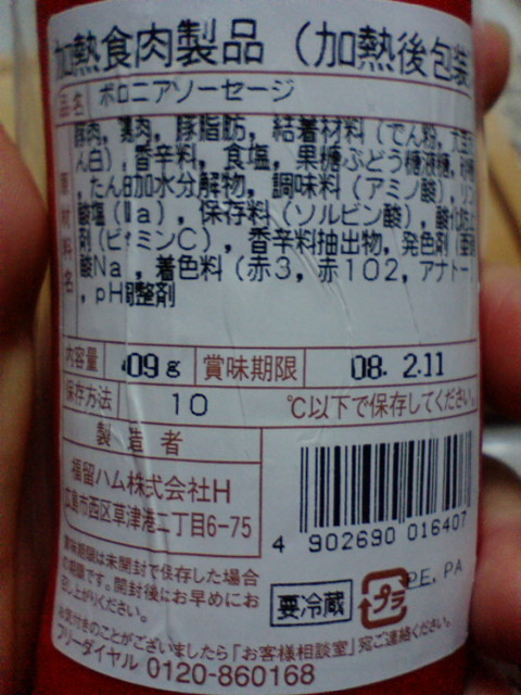 極太ソーセージを貰いました。冷蔵庫に4つも!入ってます。