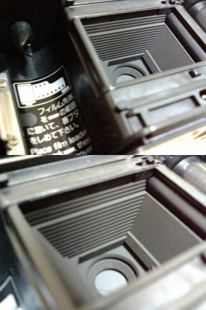 ちなみにフィルムの巻き取りをしている時、nikonの文字上にある四角の斜線柄がクルクルと回る。