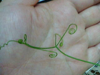 豆の花はかわいいし、巻きつくためにクルクルがあって、それもまたかわいいのよね。