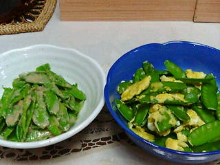 この手の豆、たまごとじにすると美味しいよね~とまずは一品。