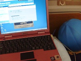 私のノートパソコンはつや消しメタリックピンク。メーカーが牛(Gateway)なので赤牛と呼んでいる。