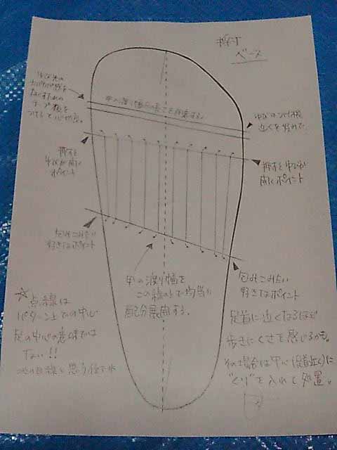 紙に足乗せ、形を取る。