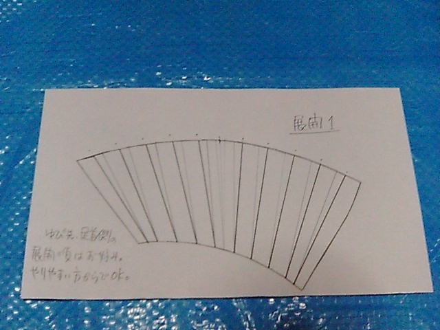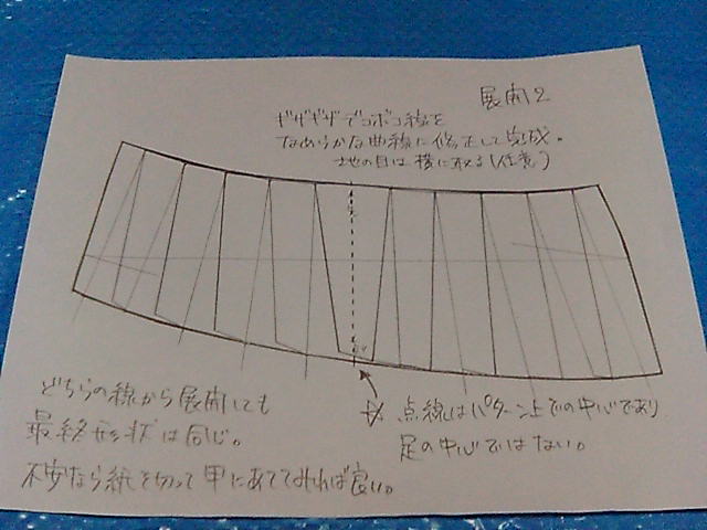 直線上で均等に割り振り、甲渡り幅の寸法を足す展開線を引く。