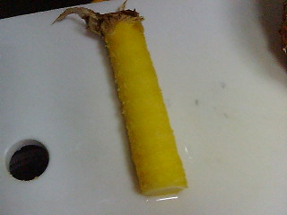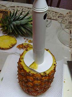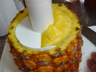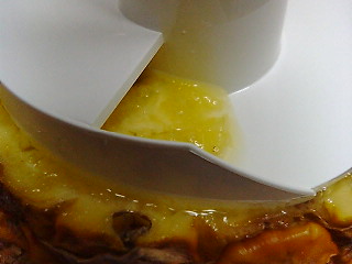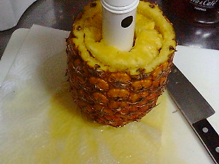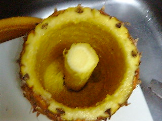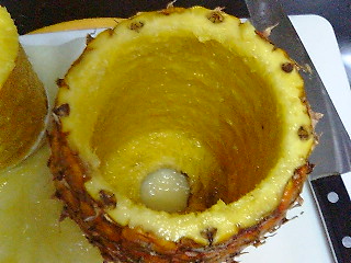 芯は引き抜いた果肉の筒の中に。