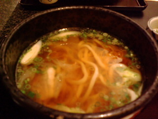 鴨を同行の母に食べてもらってネギとうどんを食べる。