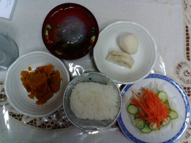 晩、里芋を茹でたものをもらったと帰宅した母。