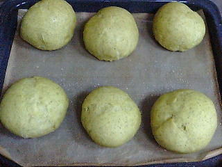 本来の配分にて、強力小麦粉の15パーセント前後をハーブパウダーに変えて作っています。