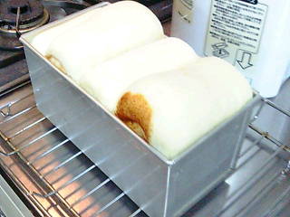 焼き上がりが潰れているのは、乾燥防止にしていたラップにべったりと張り付いてしまった。